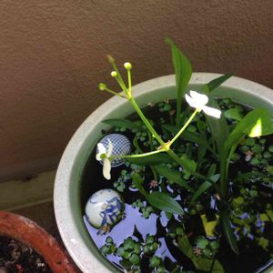 メダカ鉢の水草に花が😊💕 去年は咲かなかったので初✨ 花咲くとは知らず得した気分😆👍🏻