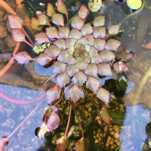 ウォーターダイヤ。浮き草としてパックに入れられホームセンターで売られていたけど調べてみたらパックに書いてある方法では枯れて無くなるらしく😅水に浮かせるだけでは消滅するそうで小さい鉢に赤玉土入れて茎の先を植えました。 水温低いせいか葉が紅葉(?)しちゃったけれど💦メダカ鉢置いてある場所が日当たりイマイチな所なので少しだけ移動させてみたから水温上がるといいな☀️ 冬越しした他の水草の調子はよろしく無いので何とかしなくちゃね😓