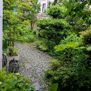 雨あがりの庭 木々の緑が日に日に 濃くなってゆく… アジサイの花も 色づいてきました💙