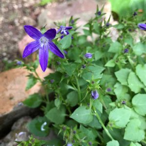 落ち生えのムラサキツユクサです。駐車場のコンクリの隙間から生えてます😁涼し気なブルーが気に入って抜かずに置いてます😃