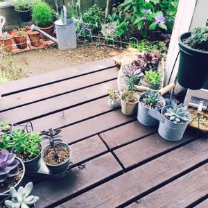 ちまちましてるけど、多肉ちゃんのいるデッキはお気に入り空間♪ 棚、欲しいなあ……。 棚があったら多肉ちゃんももっともっと欲しくなってしまうなあ。 なくても欲しいんだから(笑) 増やした子で寄せ植えできるようになるといいなあ♪