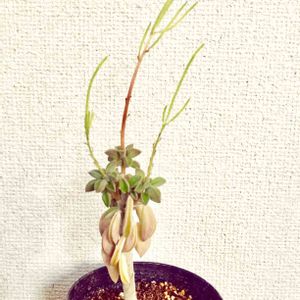 育て方、よくゆうタップリ水、ではなく、ちょっとあげて放置、陽に当ててびろーんと伸びて来たらチョキンでいいそうです。おしゃれ花屋さんに同じのがいて、どうやって育てたらいいのか尋ねたらそんな感じで合ってたみたい。年3回くらいは土を流すため風のある晴れた日にはドバーッと水をあげたりもいいかもです。うちの子は今年だけで2回チョキンした。このびろーんが鉢を回してもすぐ太陽レーダーみたいに方向を変えるのでおもしろい。また切る予定。3つにふえてたしとても元気w寒さもまあ強い。