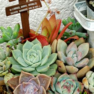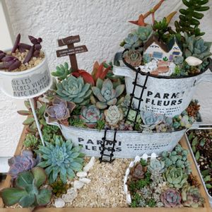 多肉タワーの2階部分☺️ 茶色のピックはアイスの棒で手作りしました✨