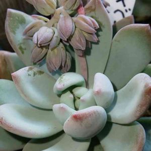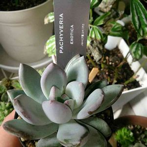 【パキベリア属 エキゾチカ】 Pachyveria 'Exotica' 別名 エキゾティカ (星美人×カンテの交配種) 【パキベリア属 パウダー パフ】 Pachyveria 'Powder Puff' 和名 霜の朝(しものあした) 【パキベリア属 小林?】 Pachyveria 'Kobayashi' 手書き🏷️には【エキゾチカ】と 「うちに居たような気がする」 と持ち帰って調べたら、 どうも【霜の朝】みたいですね シモノアシタ、ウチニアリマシタ (ノω・、) ICNでエキゾチカを検索すると 【パウダーパフ】のタイトルで、 ☆エキゾチカ 'Exotica' ☆霜の朝 'Shimono-Ashita' ☆小林 'Kobayashi' の3つの名前が出てきました しかしUS生まれの作出者不明なのに、 「小林」ってどなた?(*‘ω‘ *) 「US hybrid, created in the 1970s, breeder unknown. Synonyms: x Pachyveria 'Exotica' 'Shimono-Ashita' 霜の朝 x Pachyveria 'Kobayashi' 小林 Parentage: Pachyphytum oviferum x Echeveria cante」 【国際ベンケイソウ科ネットワーク】 (ICN)のサイトから抜粋 http://www.crassulaceae.ch/de/artikel?akID=147&aaID=2&aiID=P&aID=2103