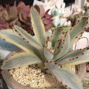 こんにちは! 今日は、しとしと雨模様☔ こんな日は、何しましょ😄 我が家の葉挿しの月兎耳錦、赤ちゃん出てきました💕 このまま、大きくなって下さいよ😸💞