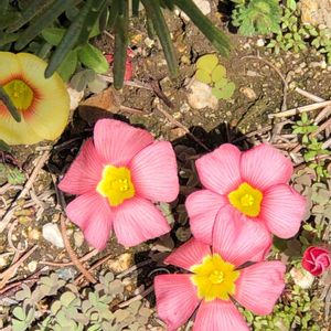 こんにちは。 昨日に引き続き、職場の地植えオキザリス。 掘りあげせず、植えっぱなしです☺。 無肥料で、水は雨水のみ (^o^)。 ☘Oxalis obtusa Rose ☘ 鉢植えで育てているよりも、葉っぱがキュッと引き締まっています。 自宅の庭では、地植えしてある場所に、毎年 小さな球根を足して咲かせているので 植えっぱなしの球根が咲いているのかが、分からない状態(^o^) 職場の一角で、植えっぱなし実験 笑笑☺