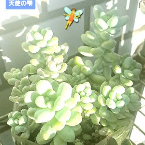 おはようございます😃ドカイセイ🌤 天使の雫(セダム属)🧚 朝陽を浴びて大粒つぶつぶ、白粉キラキラ💧 よい一日を🐬.。o○🌈🌏