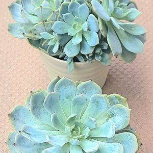 おはようございます😃🌤 ラウリンゼ🙆と桃太郎🍑 定番の安定感、どちらも直径10cmくらい🍀 白粉系はお日様大好き💕 よい一日を🐬.。o○🌈🌏