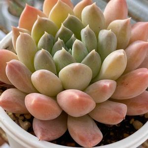 こんばんは🌇 この時間帯の多肉ちゃんの 色合いが好きです♪♬ 青みかかりのグレーにサーモンピンクの 縁✨✨葉数もあり綺麗に育ちました💝 🏷ド真ん中の日