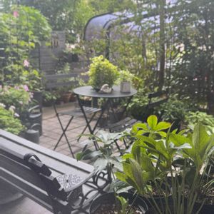 〜今日の庭〜 小雨降る テラスから ① リビングの網戸越しに…撮影 *クリスマスローズ達* 15鉢 家の裏(日陰)から引っ越して来ました〜❤︎ 先日 いくつか 鉢増しした。 また、無事にお花が咲きますように! ② *クレマチス アンスンエンシス* (画面 右上↗️) キラキラで青々していた葉が 夏の暑さでか 縮れ 全部落ちた… けれど、ここ数日で復活しだした🌿🤩 ③ *シクラメン* *スキミア* テラスの軒下 隅っこで 夏を越し待機中…。 ④⑤ *スキミア ルベラ* 昨日、GSで たくさん蕾が付いた立派なスキミアの投稿を見て ウチの子は?と確認! これは?! 小さいけれど…蕾の元かな??