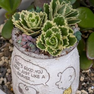 おはようございます😊 アトランティスとパープルヘイズの寄せ植え 🏷️毎月2日はスヌーピーの日 参加させていただきます