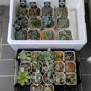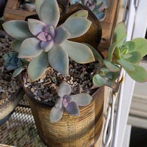 こんにちは😊 ベランダ多肉たち❣️ 底面給水しました。 なかなかお水あげられなくてシワシワ💦 枯れ葉取りしてる時、初登場?モコが私を見つめる目が可愛くて💞💞