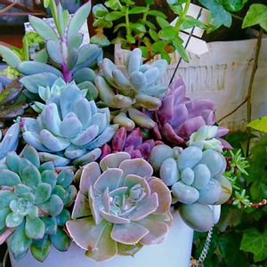 シックカラー💙のリメ缶を作ったので 渋めの子達で寄せました☆ このリメ缶 新型デス♪ バスロマン缶より少し薄めで、人気のスリム缶の2倍位の厚みで安定感抜群‼ 他のカラーも作ったので 明日のイベントでリメ缶のみの販売も致します☆ 今回のイベントは多肉寄せ植え、リメ缶、リメ鉢をメインにご提案予定~💞 これからの梅雨時期にマッチするようなシックカラー💙沢山ご用意してます☆渋めなので男性の方や、"父の日"プレゼント🎁にも使えます🍀 気になる方は明日☆ 愛知県豊橋市多米公民館 "まんまるマルシェ" 10:00~15:00 お越し下さいませ💜