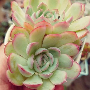 花月夜 × ヒアリナサンルイスデラパス 多肉イベントにて発見✨ ツンツンしたところが薄いピンクで ちょっと肉厚でキレイ 名前、覚えられる自信が無いです