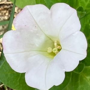 昨年の零れ種だねから小さな小さな赤ちゃんペチュニア🌸 もしやと思い?先日芝刈りした時に花は無かったけれど葉っぱが🌱それらしかったので✌️薄っすら色が‥??