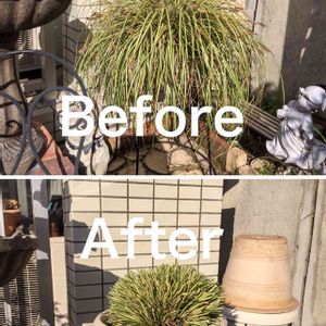もさもさのヒノキを散髪(剪定)しました。トトロに見えますでしょうか? 疲れた…。😝