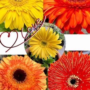 お疲れ様です。 八重咲きガーベラ❣️ コラージュしました。 今日のお花に参加します。