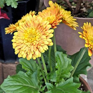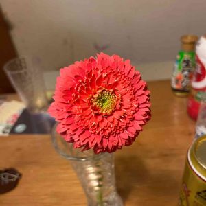 今日のお花ガーベラ。 前のpicこちらと間違えました。 上が八重下が一重。