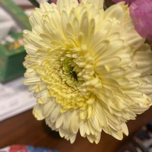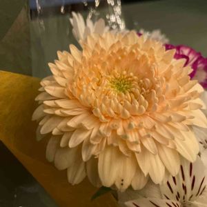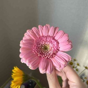 AIは「ガーベラ」で68%だと。 低くて信用出来ず😅 「八重咲きガーベラ」と教えて いただきました。 ありがとうございました😊