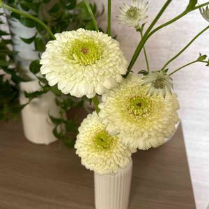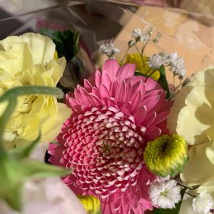 本日、休みというのに、雨。寒いですねー ハンギングバスケットのレッスンへ久々、行ってきました。 昨年のガーベラが、綺麗に咲いてくれるので、本日、可愛い八重咲きガーベラ迎えてきました。 切り花にも使える、デルフィニウムに、ラックスフラワーも、迎えてみました。 先日、アレンジしたお花も、綺麗に開花して、家の中で、楽しんでます。家の中で、花見できます。