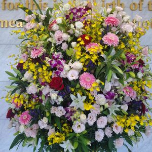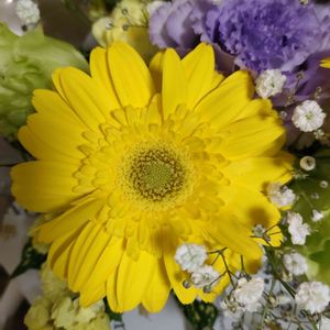こんにちは😊 ビタミンカラーのガーベラとスターチス🌼*・🌼*・🌼 仏花にしてはちょっと賑やかですが😄🤗 🏷日曜ビタミンカラー♪ 🏷幸せの黄色いお花 に参加させて下さいね🍀