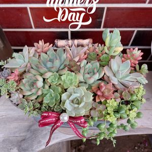 息子からの🎁 多肉植物の寄せ植え🌱隙間無く、寄せ植え、見入ってしまいました(*^^*)ありがとう💚
