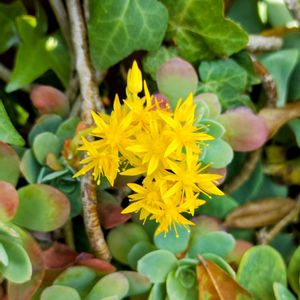 何年か前にお友達からカットして頂いたセダム「薄化粧」小さなカット苗がいつの間にか花壇の植えていないところに群生。黄色い花に元気をもらいます。3枚目は頂いた時の「薄化粧」