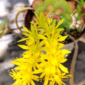 ①多肉畑の薄化粧さんの黄色いお花 可愛いー💛🌼🥰 ②名前分からなくなったセンペルさんモリモリになってる🤩 ③今日 HCコーナンさんの多肉寄せ植えバイキングでの寄せ植え🎶💕