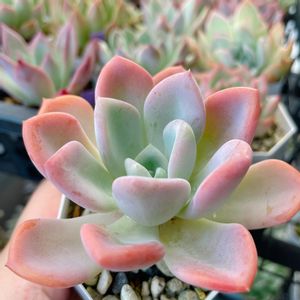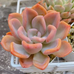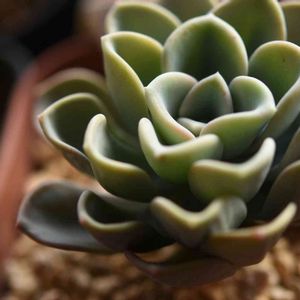 エケベリア属 オルペット。 肉厚でカーブした葉が可愛い♡ ちょっと形が悪いのは、足元には子供がいるから🥰