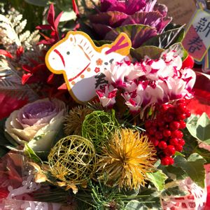 🌸今年も花友の皆さま どうぞよろしくお願い致します🌸 今年は葉牡丹とヤブコウジの寄せ植えを作りました♪ 松飾は千両とフリージア。 玄関のしめ縄は、講座で作ったものを飾って。 たくさんの笑顔と花々に囲まれた日々が続きますように🍀✨ 石川能登半島地震で被害に遭われた皆様の一日も早い復興をお祈り申し上げます。