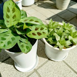 お母さんマランタと挿し芽からの子供マランタと眠らないカラテア。 子供マランタは今日から室内。 外ですくすく育ってくれました😊 すかさず、こぐチェック!