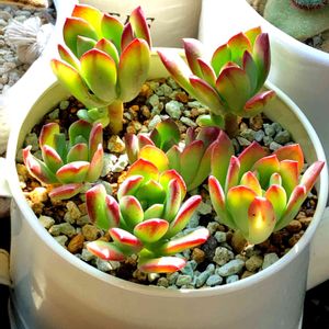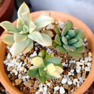 左の子はこの春オマケでもらった『ミニベル』 うちに来た時は真緑だったんだけど、数日前よく見たら斑が出てない❔斑落ちの子だったのかな❔ 右の子はアパートのタニ友に「これでよかったら育てる?」と、言ってもらった斑がほぼ消えていた『愛染錦』こちらも中心から斑がいい感じに出ている気がします😊