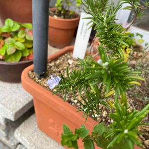 💚ローズマリー(トスカーナブルー)💚 我が家のローズマリー🌿 触れるとすっっごい(おいしそうな)いい匂い😊 チキンの香草焼きが食べたくなります🍖 ところで、お花が咲かないのですが…… まだ小さいからかなぁ🤔