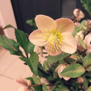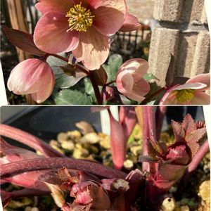 昨年末お迎えしたクリスマスローズ ピンクフロスト。 久しぶりに見たら、なんと咲いてる! (中身は虫食いのあと) つぼみもあります✨ シックなピンクで可愛いな💕