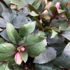 クリスマスローズを植え替え〜 クリスマスローズ・ピンクフロストの蕾が❤️ 芽もいっぱい出てきてる✨ もう少し土足すべき?