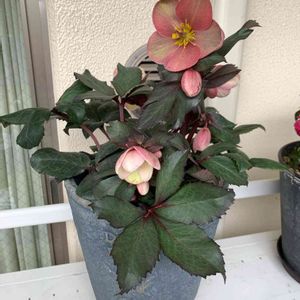 クリスマスローズピンクフロストも咲いてきました🥰 昼間は外で慣らしています🥰 可愛いなぁ❤️ つぼみもコロンとして可愛い💕