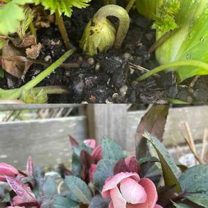 クリスマスローズ ピンクフロスト 名前に惚れて買った… それから2回目の春 あちゃこちゃ向いちゃって、よく良さがわからないのです…