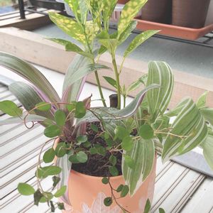 オールDAISOで寄せ植え ワイヤープランツ 紫オモト クロトン トラデスカンチア 初めての植物ばかりだから お世話の仕方調べなくちゃ💦