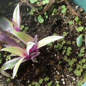 納涼肝試し♬ シャクレ貞子 やっと使えたーー❤️ ムラサキオモトです。 緑の葉が 生えてきました💦 裏がわは ムラサキなんだけどね✨