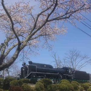 長野県辰野町の荒神山の桜です‼️ SLは、D51です🙂‼️ SLは展示です‼️