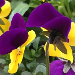 こちらも、鮮やかな紫と黄色で目立っていました(╹◡╹)何故か、1つの鉢でお顔の向きがバラバラで一点に集中して撮れません😅
