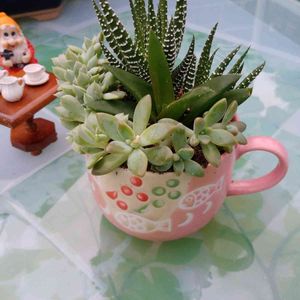 茶碗蒸しの容器にドリルで穴を開けて鉢にして多肉を寄せ植えしました😊