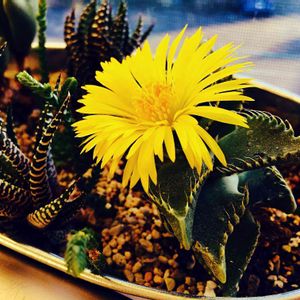 フォーカリア、咲きました! 午後3時頃に開いて、暗くなると閉じます。 見た目とはウラハラな綺麗なお花。 マツバギク科と聞いて納得♪ なんだか色々面白いな〜♪