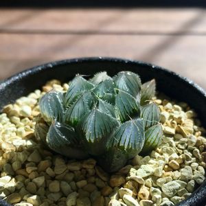 ベヌスタ交配種 寄居の実家へ来たので、家から15分の花植木センターへ朝イチ、ハオルチア狩へ❤️ たったひとつ見つけた可愛い子😍💕裏窓まで綺麗(●´ω`●) 今日は、実家でBBQ‼️昼から飲み飲み❤️
