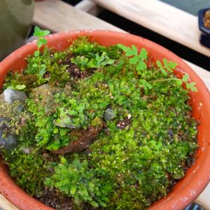 苔の聖地(うちの庭)からはがして持ってきました。 コホウオウゴケで合ってると思います。ミニシダ付きです。💕 えっ?虫?大丈夫でしょう。いなかったみたいですよ。(てきとー)😅