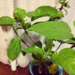 ( ,,-` 。´-)ホォーォ ウシシ((≧艸≦))ウシシ 種から育てたハイビスカスに はじめての花芽らしきのが…👀❣️ 咲いたら次回載せま~す😆🤚