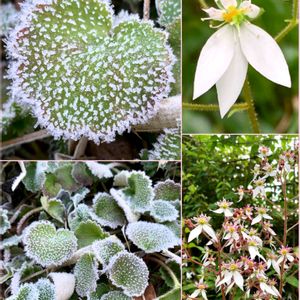 ユキノシタ 日陰のユキノシタは砂糖菓子みたいです。 花は6月 半年前。 半年後には見られます。
