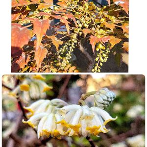 今朝の散歩🚶から 上:ヒイラギナンテン 下:ミツマタ
