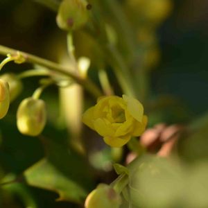 ヒイラギナンテン 常緑で濃い緑色の葉、早春に長い花穂に多数つく黄色いお花が特徴ですよね! 通りすがりに、いい香りがプーンとして、思わず戻ってきました😳 ジャスミンのようなクリーミーで甘い匂いを漂わせています。 少し沈丁花と似ている香り🙋 蜜蜂のうれしい季節✴