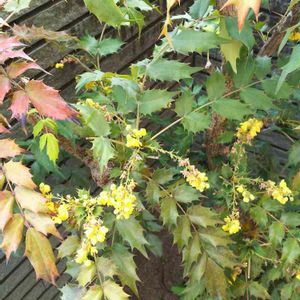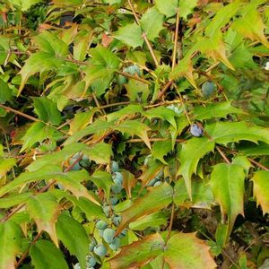 ヒイラギナンテンの実 別名 トウナンテン 原産地は中国(台湾やヒマラヤ周辺)で日本に渡来したのは1681〜1687。葉の縁にヒイラギのような刺がある。メギ科